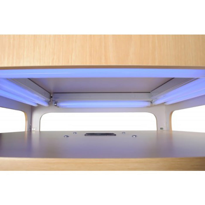 The Classic Square Nail Dryer is a stylish, custom-made drying station for hands and feet. This station includes a convenient storage cabinet and seats up to four customers. The Top dry station features eight 24 inch UV bulbs with fan for drying hands. Bottom dry station features four 24 inch UV bulbs with fan for drying feet. The Square Quick Dry Station is available with your choice of Oak, Mahogany, Cafelle, or White. For quality assurance, each drying station is designed and assembled here in the USA.