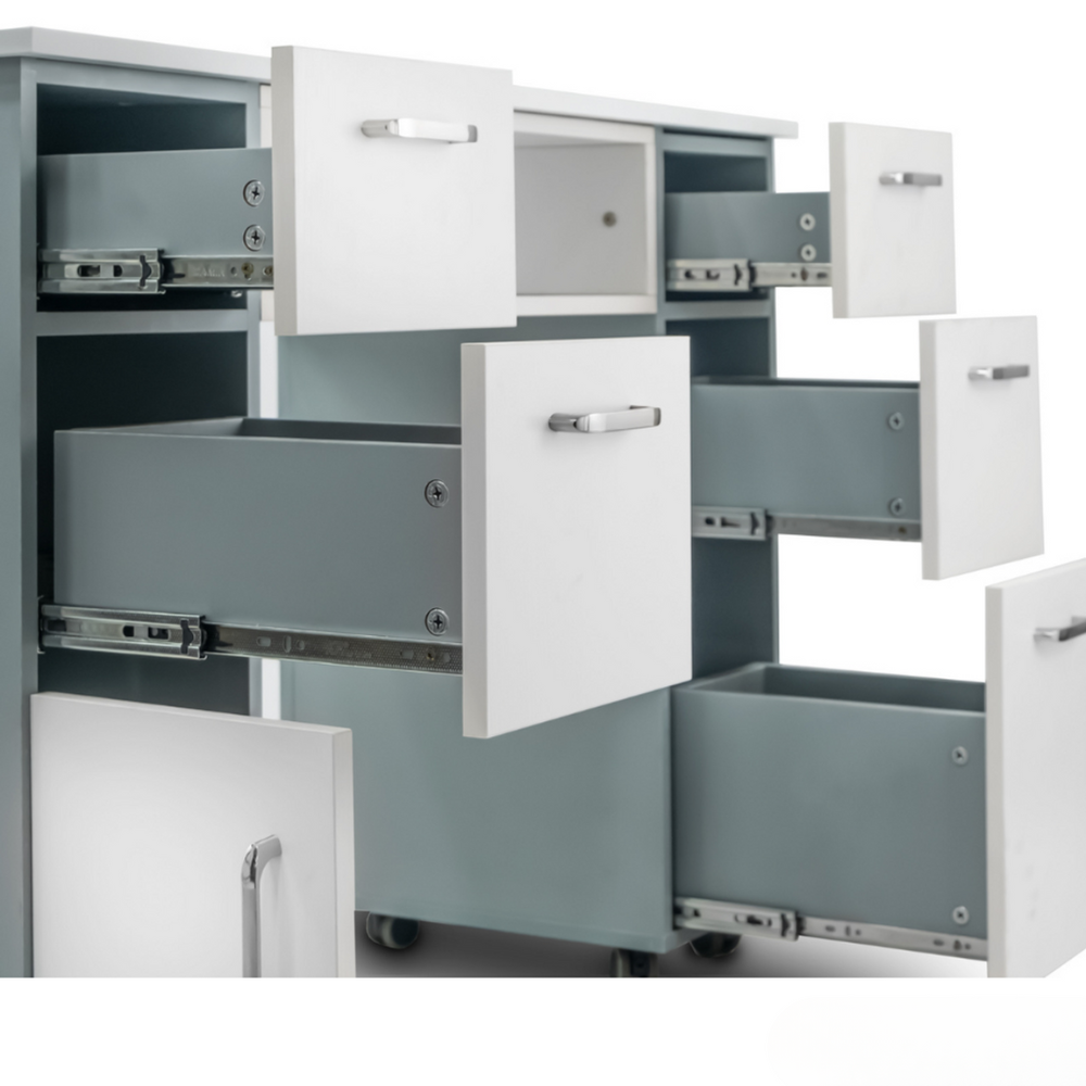 Get the perfect manicure table for your salon with Seneca Nail Table! Choose between a stylish two-toned finish in either ash wood or grey, both adding an elegant touch to the solid white table. As an added bonus, the acetone-resistant veneer and solid wood construction ensure long-lasting durability and stability. Elevate your salon experience with Seneca!