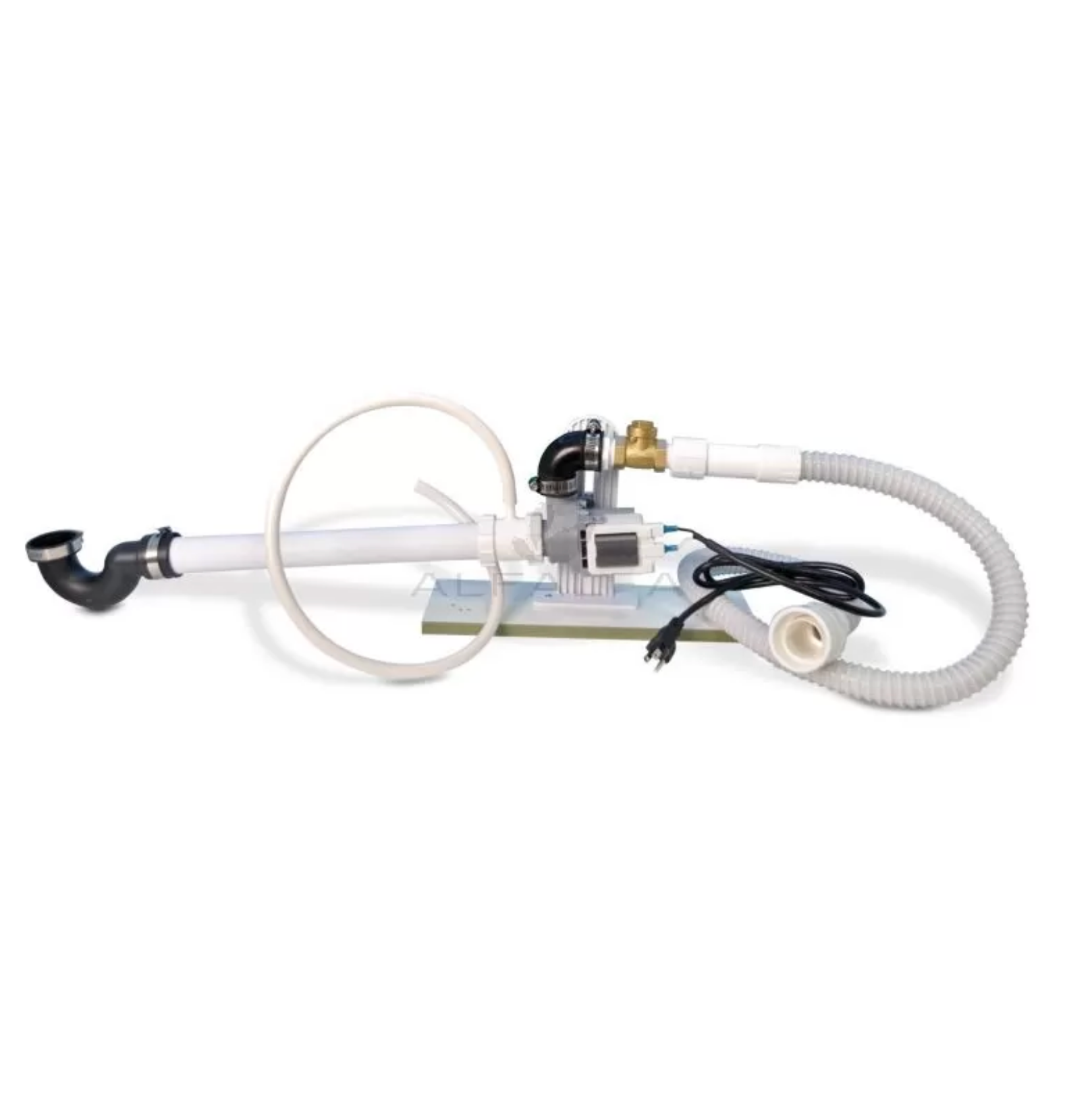 The Drain Pump Assembly discharges water from your pedicure spa. Drain pumps are necessary for spas that are drained into the wall of your salon (not needed for floor-drained spas). Complete set, includes p-trap and standing bracket 120V/ 1A.