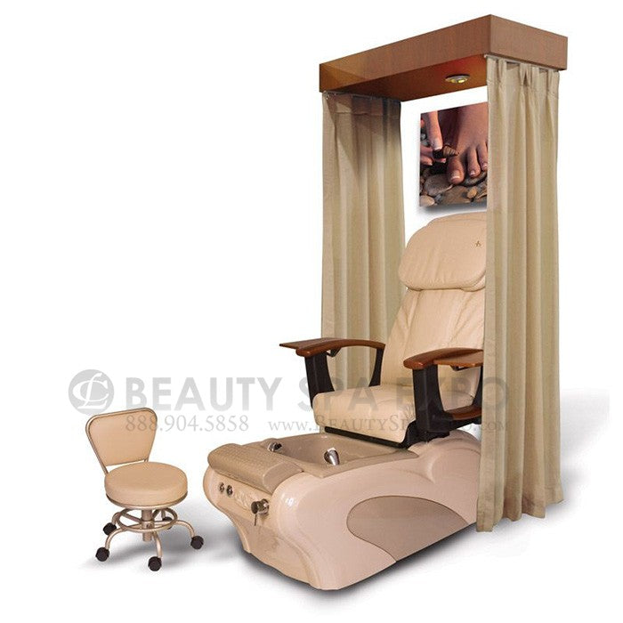 Create a warm private space in your salon with our beautiful ledge. Each Ledge includes adjustable ambient light and drapery track. Available in Oak or Mahogany. **Drapery sold separately***
