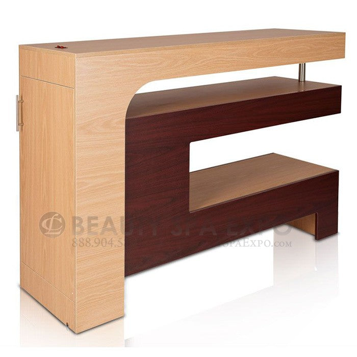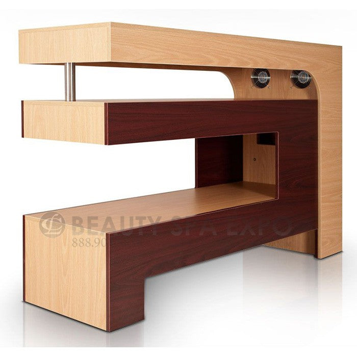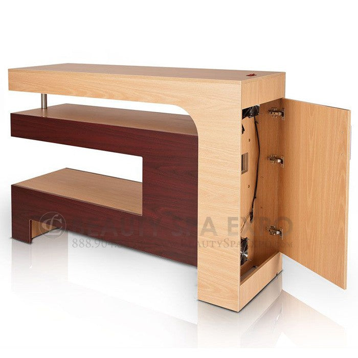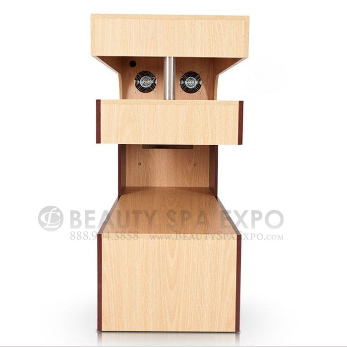 The Ion Quick Nail Dryer is a stylish, duo-tone nail drying station that seats up to four people. This beautiful drying station features duo-tone laminates, Oak and Mahogany. The Ion Quick Dry station includes three built-in fans to circulate air for faster drying times.