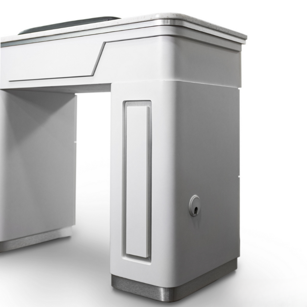 • Built-in Ventilation: The table includes a built-in ventilation system to help remove dust, fumes, and other particles generated during manicures, especially when using acrylics or gels. This is crucial for maintaining air quality and ensuring a healthier working environment for both technicians and clients.