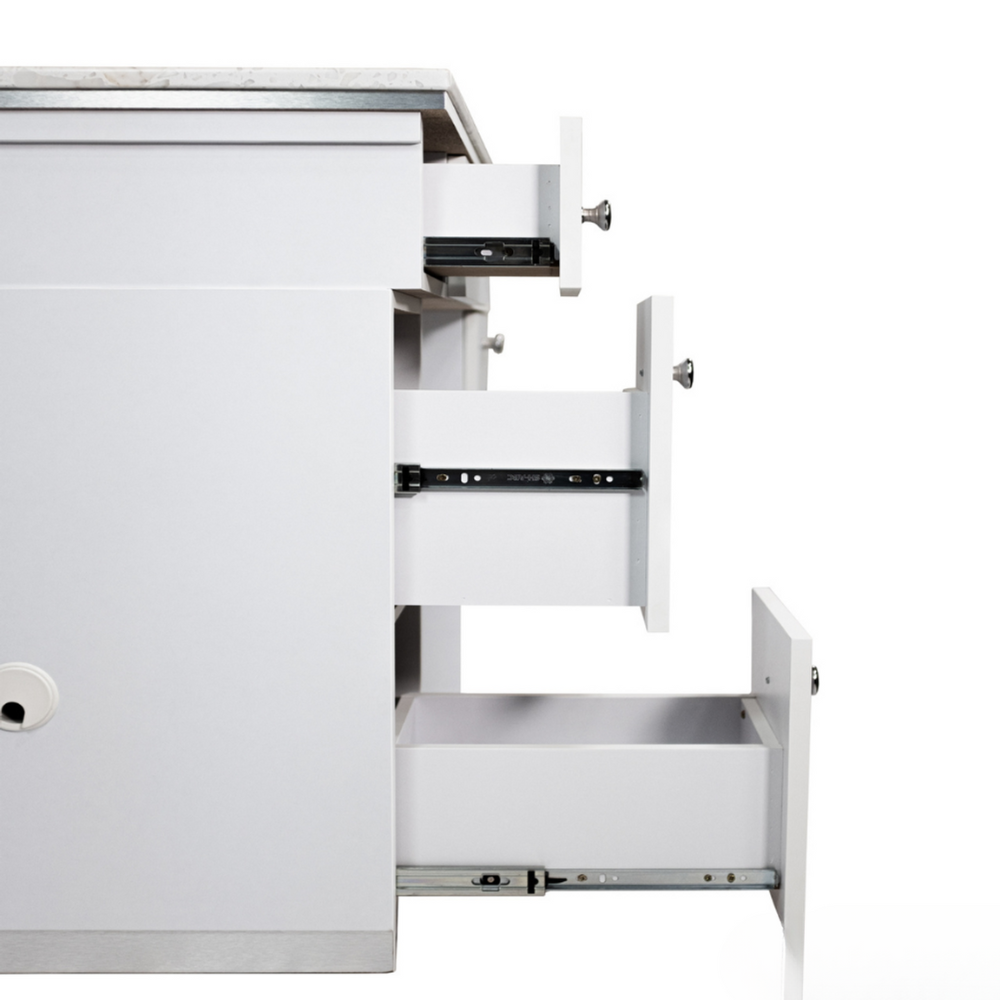 - Multiple drawers and cabinets provide ample space for all your nail products and tools.
