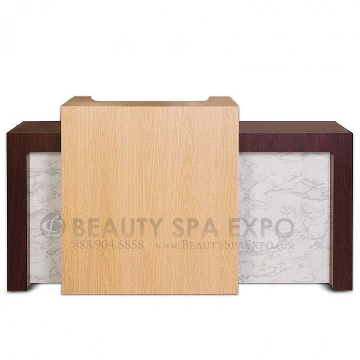 Enhance the look of your salon with our beautiful Marble Reception Desk. This great duo-tone reception counter includes a stylish white marble surface that displays on the outside of the counter. The Marble Reception Counter is equipped with 4 cabinets, 4 pull-out drawers, and plenty of counter space for doing business. Sliding top counter adjusts to your daily needs.