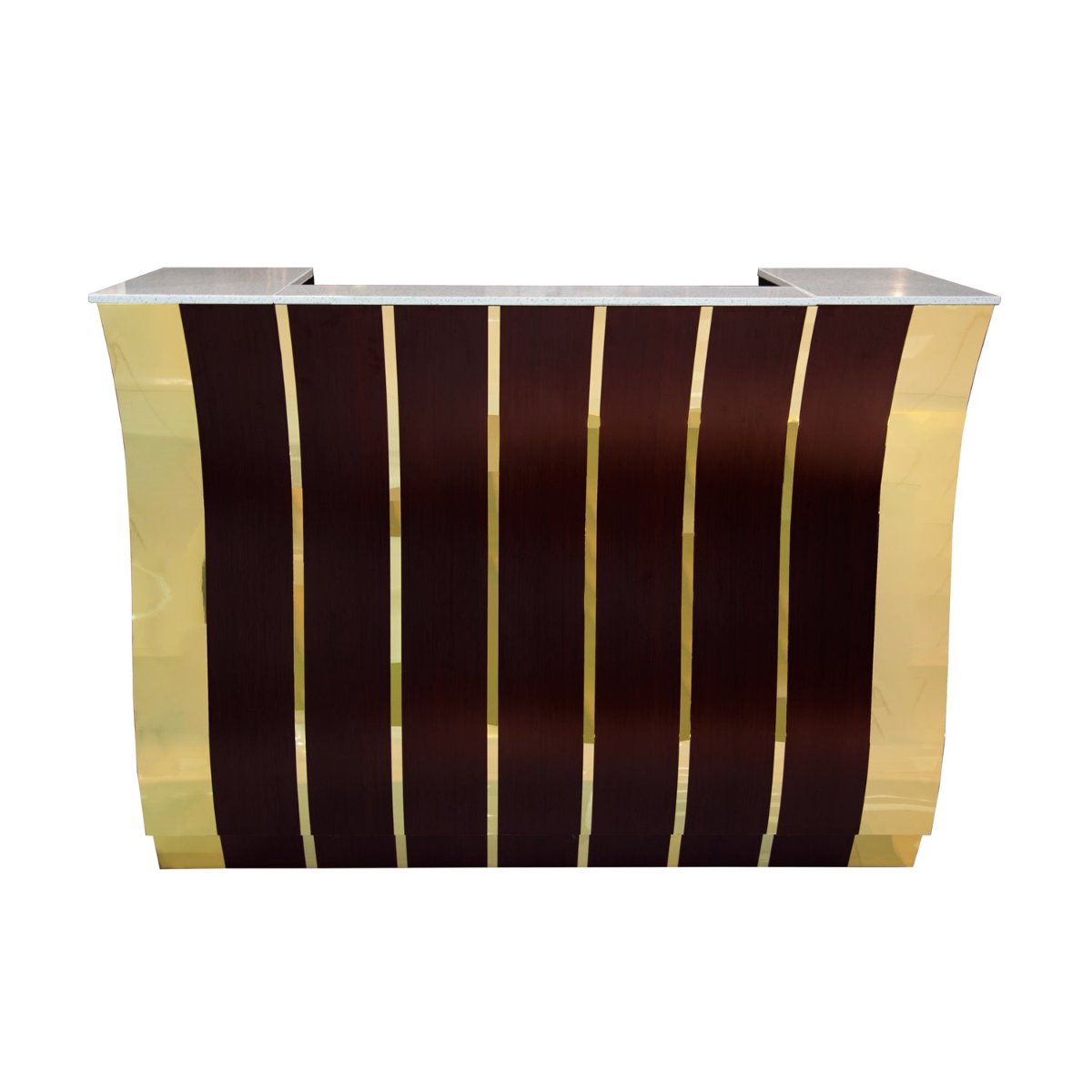 - Elegant Design: Crafted with rich wood and accented with gold, the Sewell Reception Desk adds a touch of sophistication to any salon.