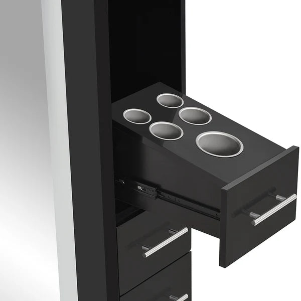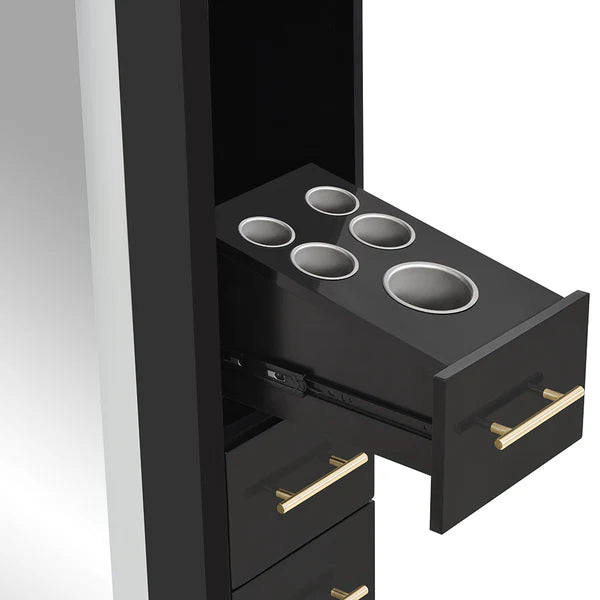 • Multi-storage area ideal for space-conscious salons