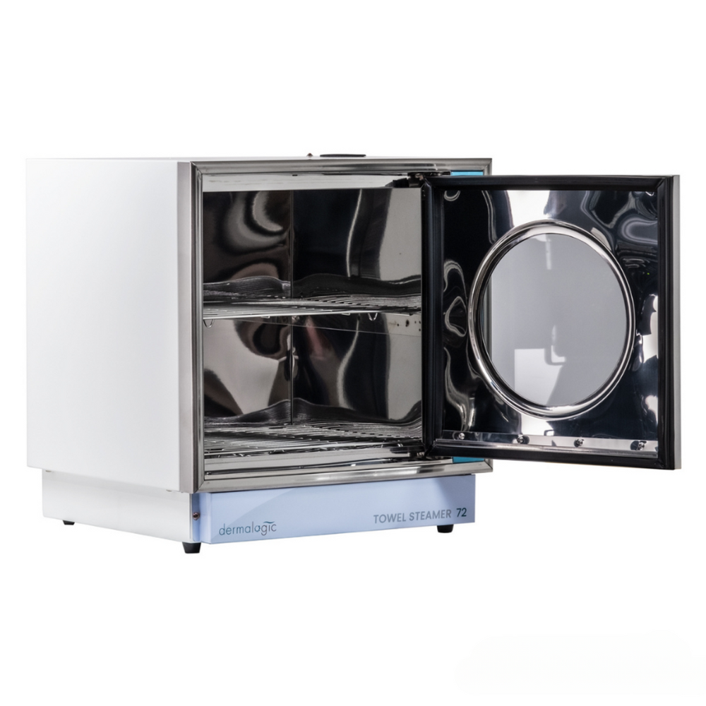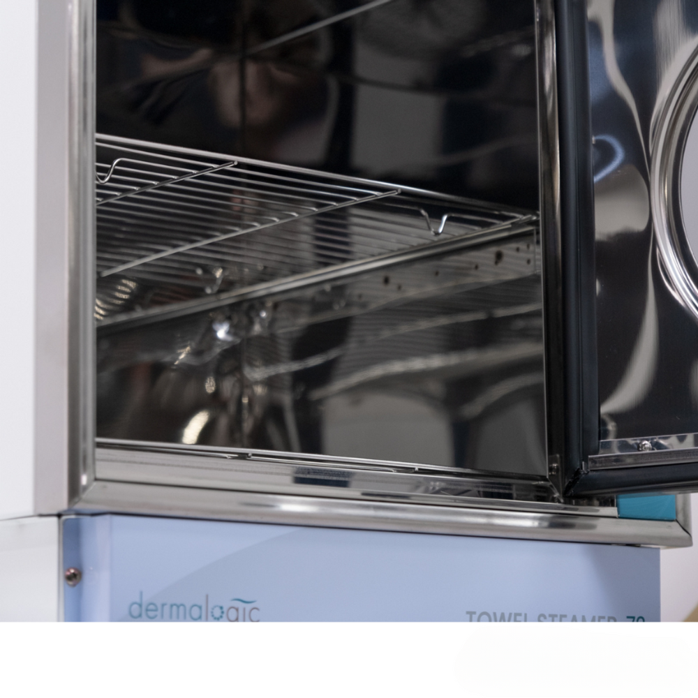 Introducing the Dermalogic Towel Steamer 72, the perfect solution for maintaining a steady supply of hot towels in your salon. Designed with efficiency and convenience in mind, this steamer features spacious shelves to accommodate up to 72 towels, ensuring your clients always receive the best service. With a sleek stainless steel exterior, indicator lights for easy water level monitoring, an auto shut-off feature for enhanced safety, and an adjustable temperature thermostat, the Dermalogic Towel Steamer 72 is an essential addition to any professional salon. Elevate your salon experience with this reliable and stylish towel steamer.