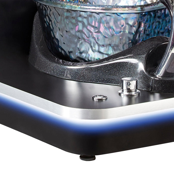 The Felicity Freeform spa pedicure chair is gorgeously designed with LED accent lighting along the sides of the platform that will light up the floor. The Felicity Freeform pedicure spa is crafted with diamond-quilted PU vegan leather and accompanied by a crystal glass basin with an iridescent “mother of pearl” finished surface. The crystal glass basin is durable, thermal shock resistant, LED-lit, and will accept spa liners. Includes a secure storage space underneath the seats and dual A/C power plugs.
