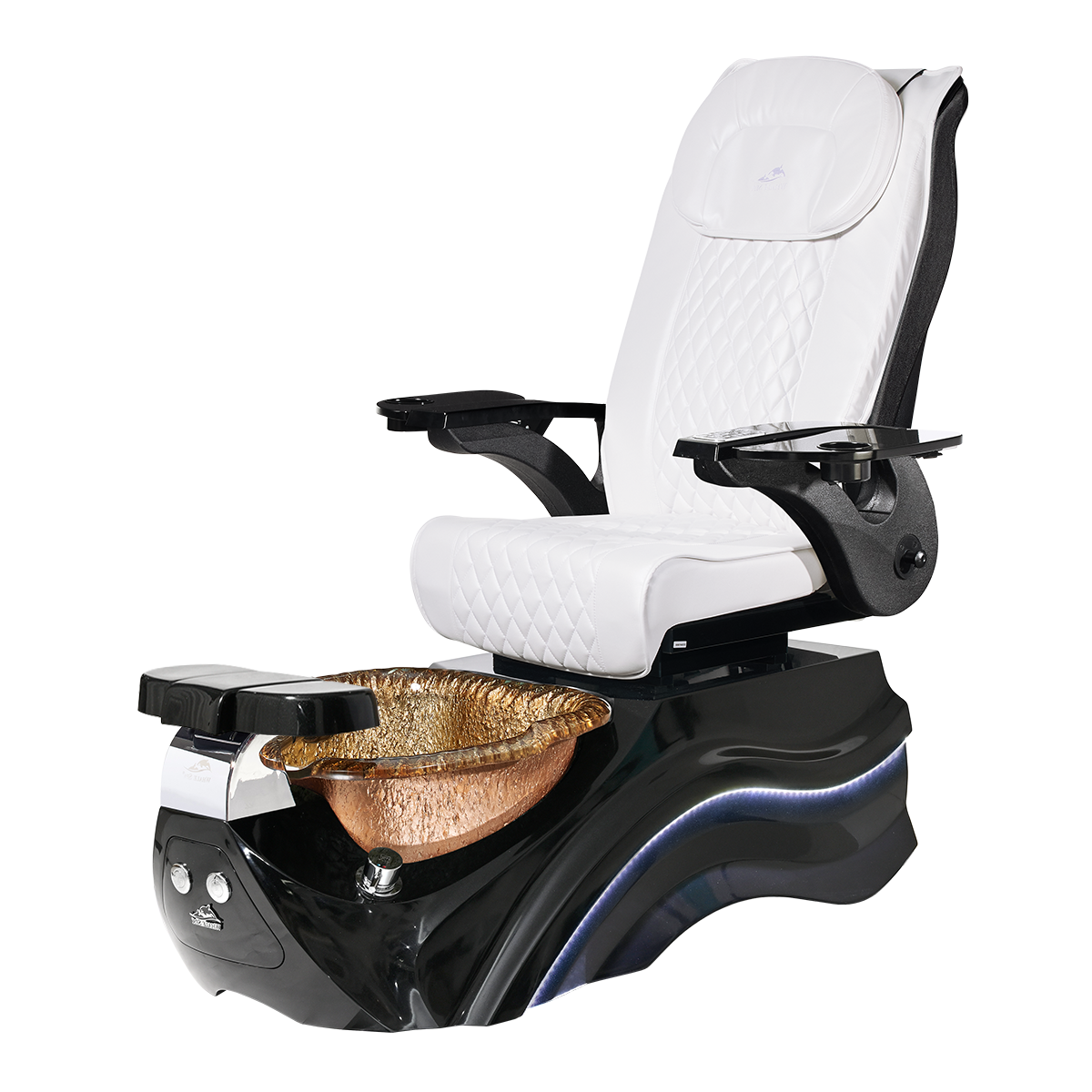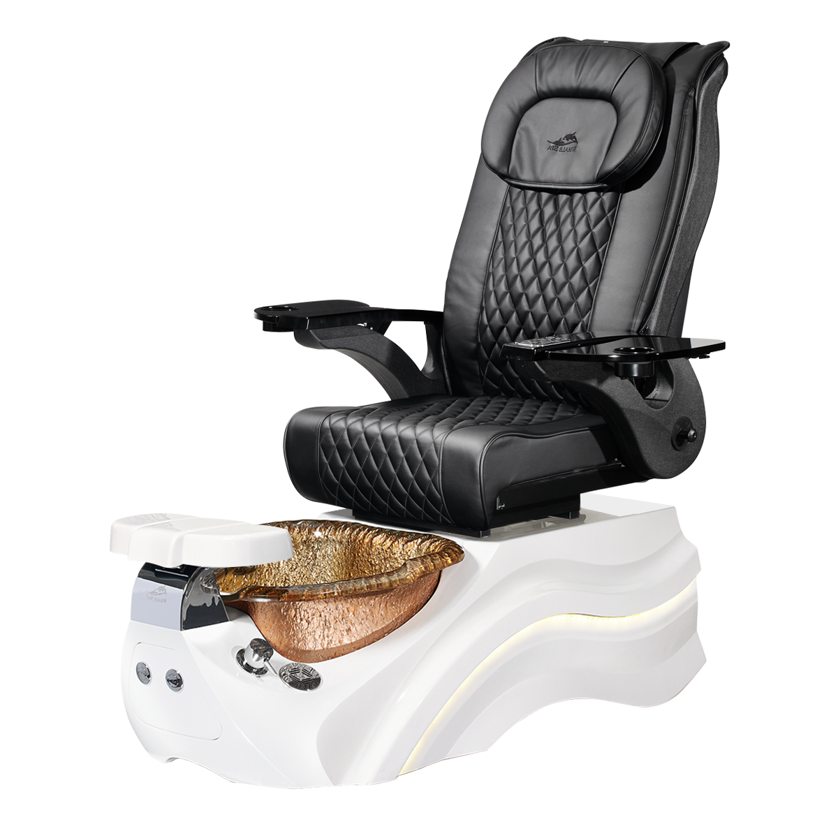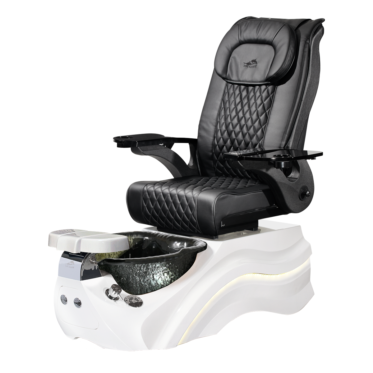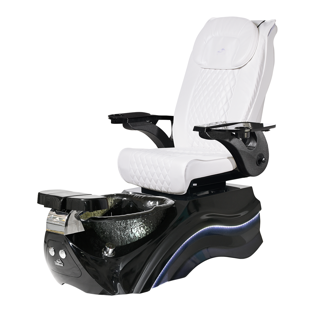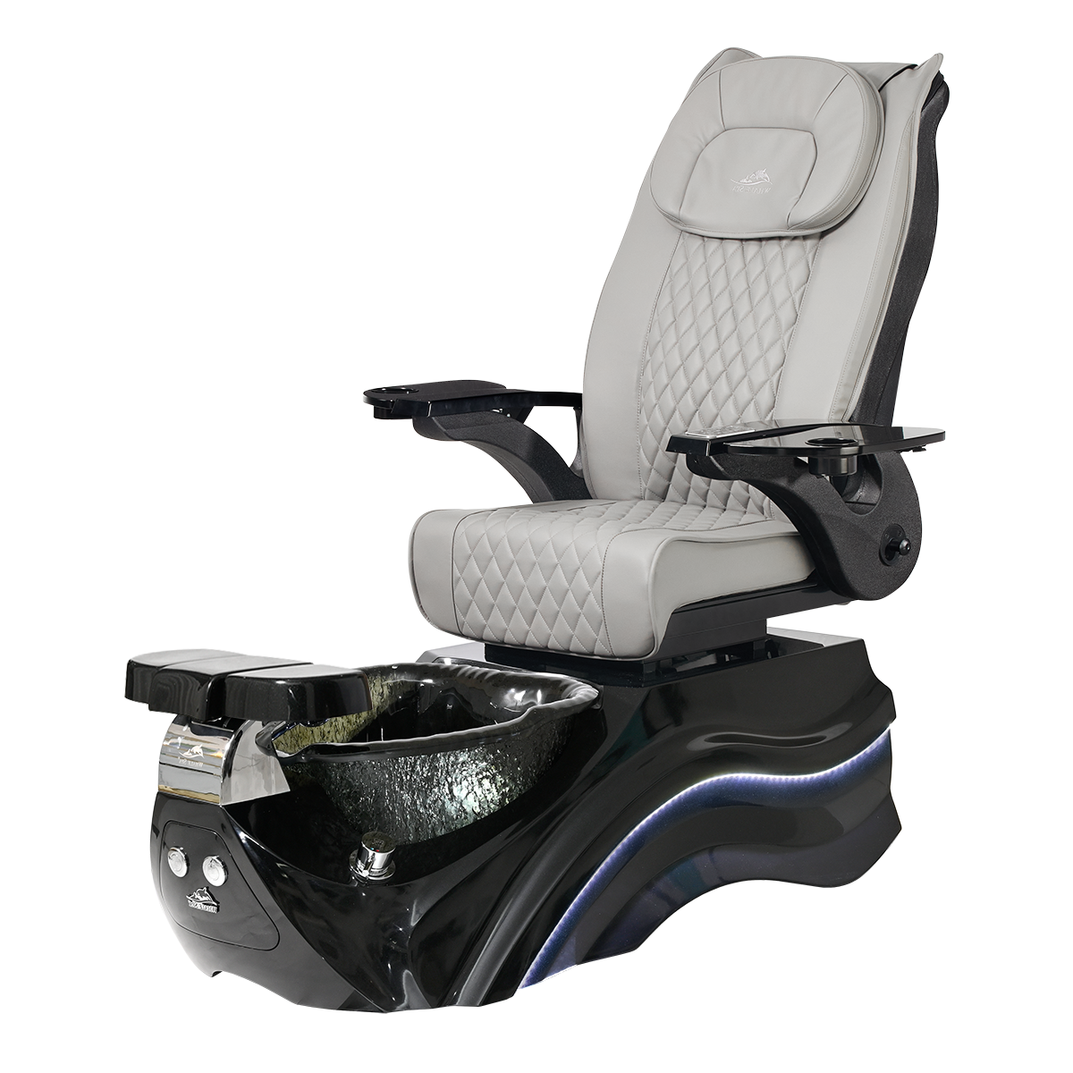 The Pleroma II spa pedicure chair, engineered for transformative pedicure perfection. This pedicure chair is marked by luxury with its glowing LED light accent lighting, stunning diamond quilted PU leather, and accompanied by the strength of it’s durable and thermal shock resistant “stone style” glass basin. A poignant touch to any modern nail salon.