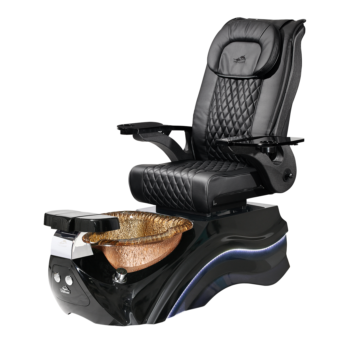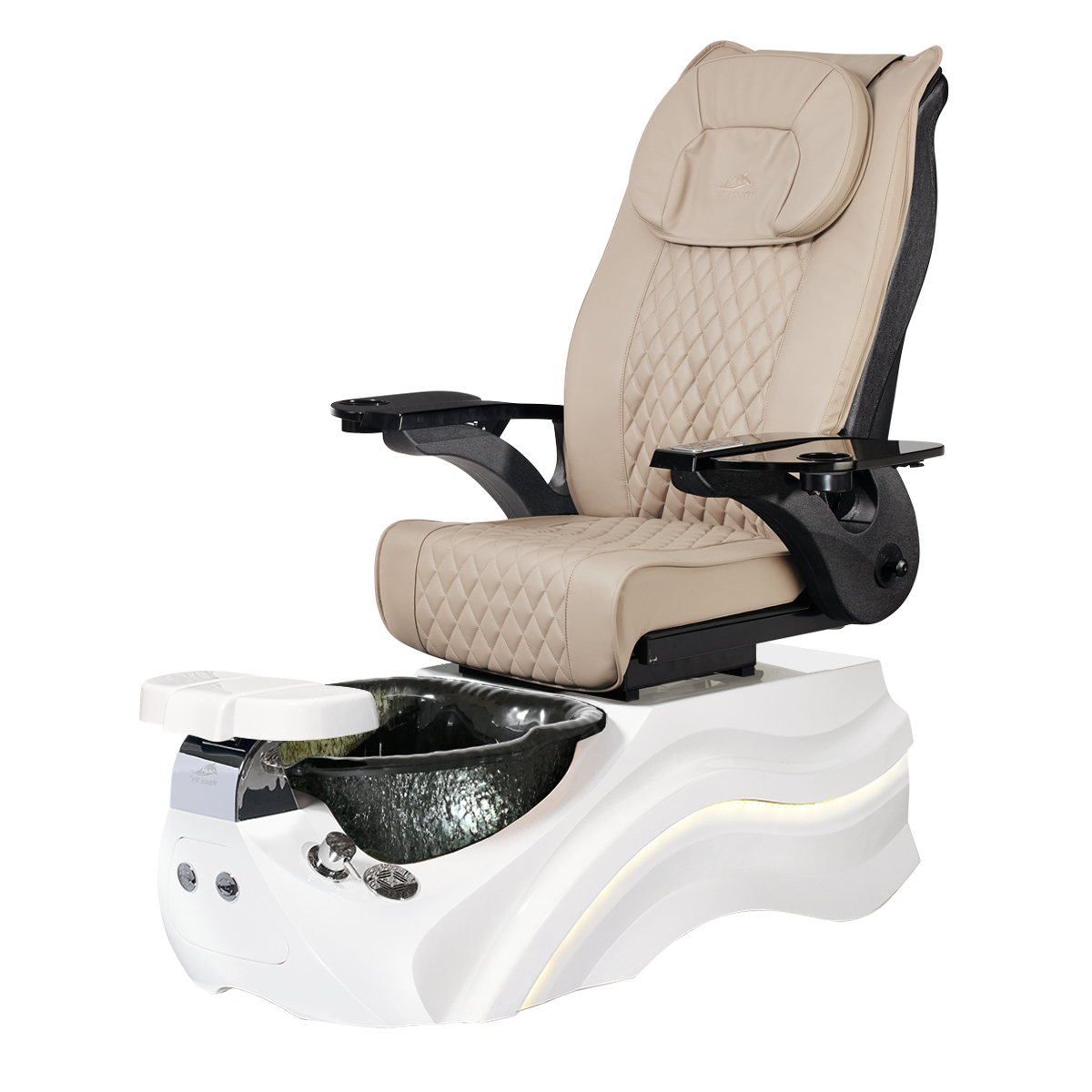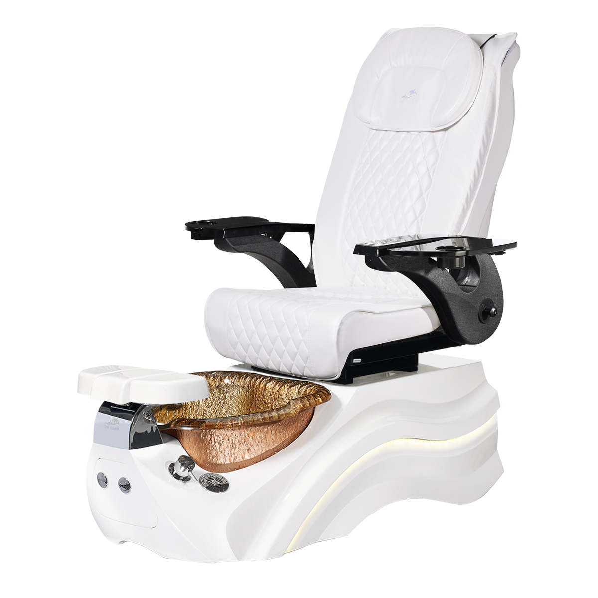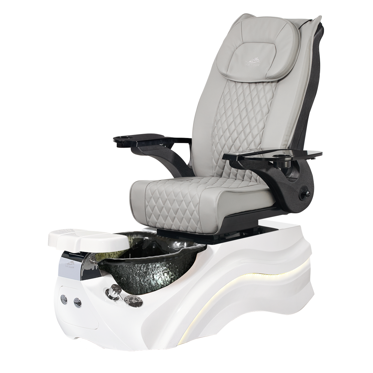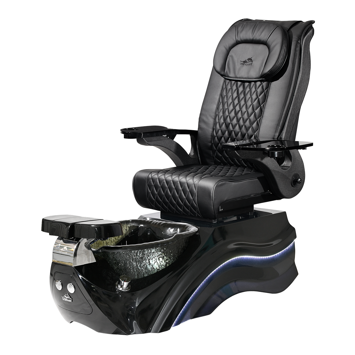 The Pleroma II spa pedicure chair, engineered for transformative pedicure perfection. This pedicure chair is marked by luxury with its glowing LED light accent lighting, stunning diamond quilted PU leather, and accompanied by the strength of it’s durable and thermal shock resistant “stone style” glass basin. A poignant touch to any modern nail salon.