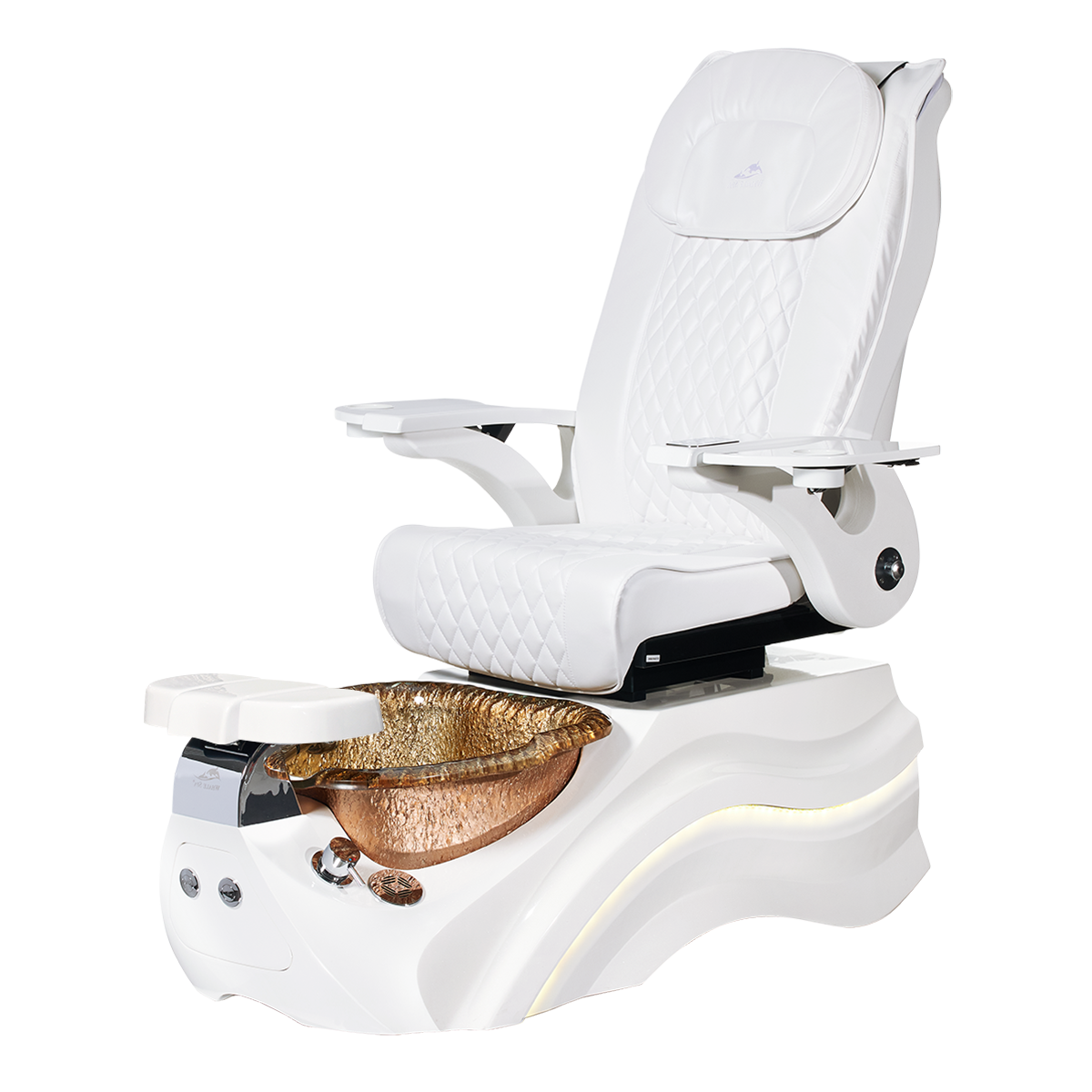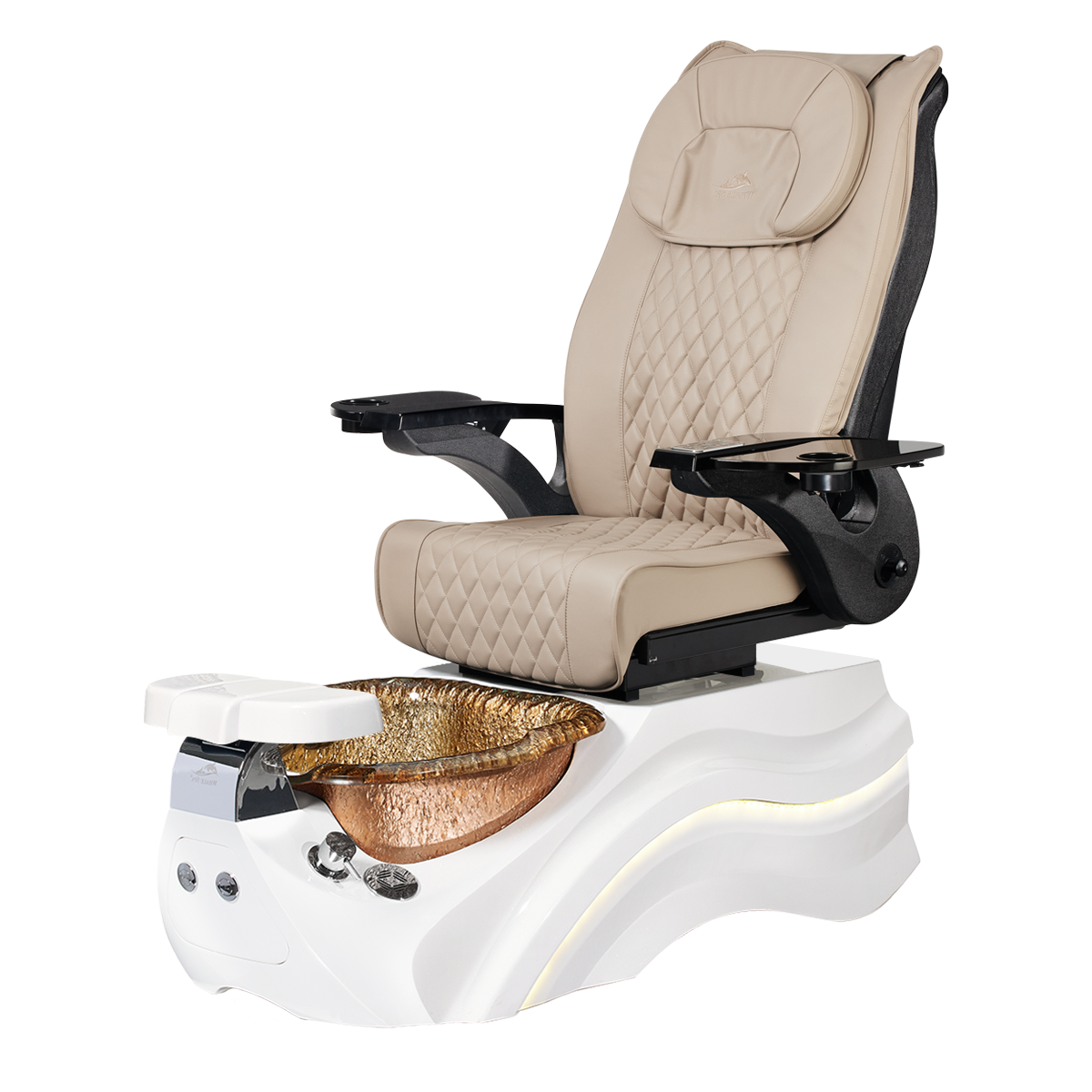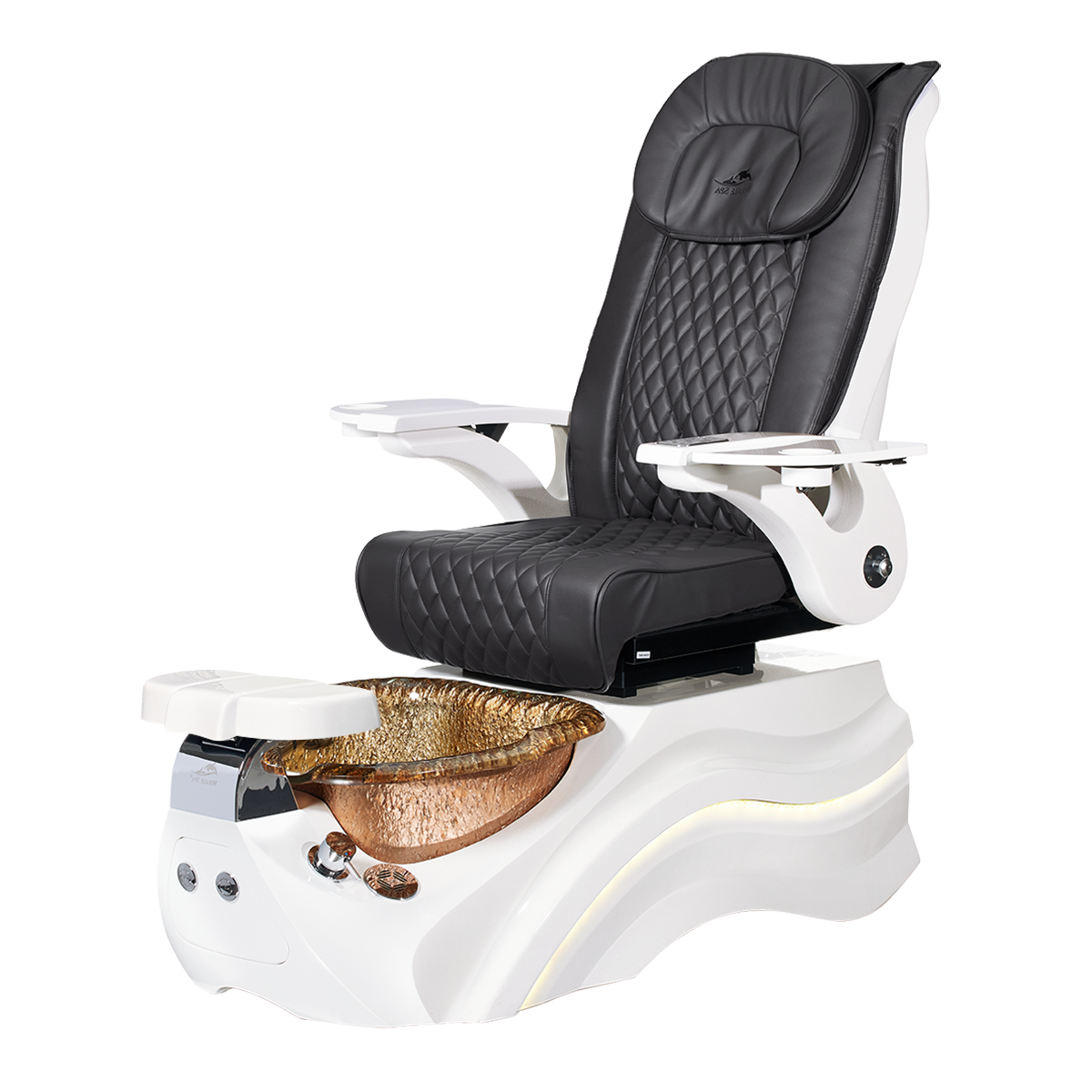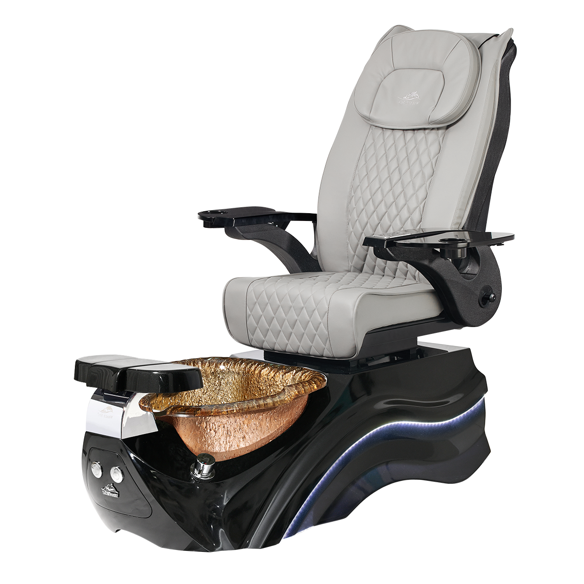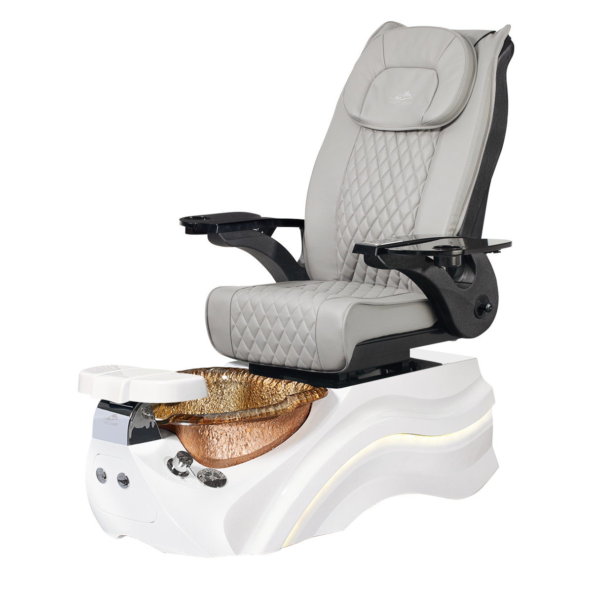 The Pleroma II spa pedicure chair, engineered for transformative pedicure perfection. This pedicure chair is marked by luxury with its glowing LED light accent lighting, stunning diamond quilted PU leather, and accompanied by the strength of it’s durable and thermal shock resistant “stone style” glass basin. A poignant touch to any modern nail salon.