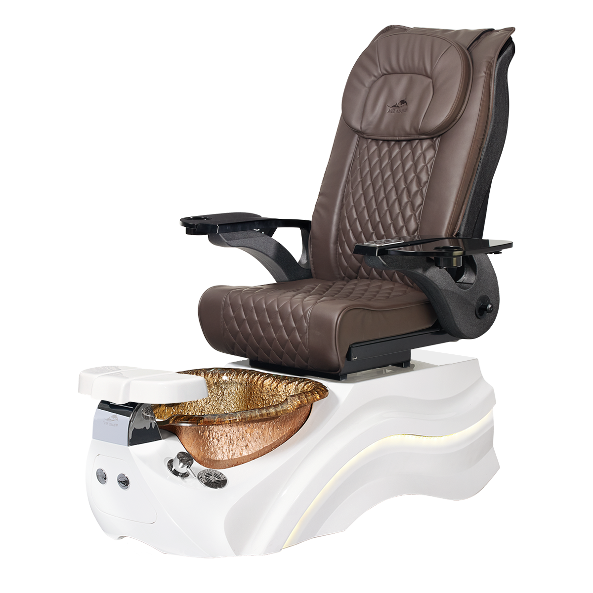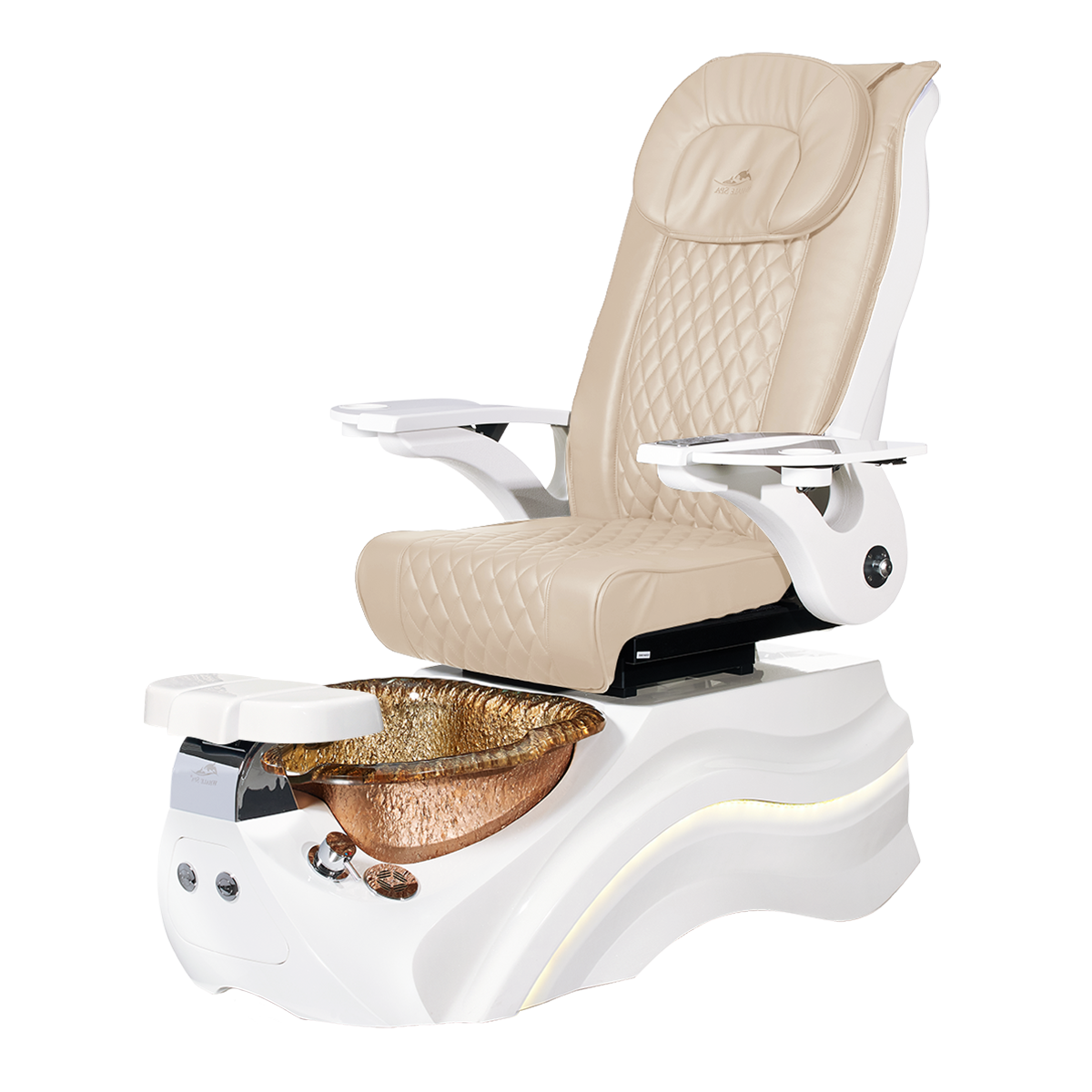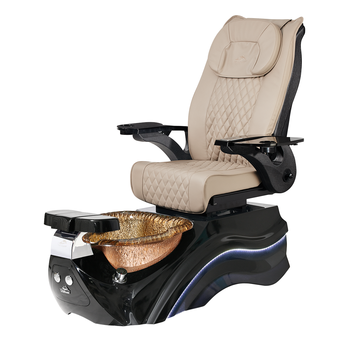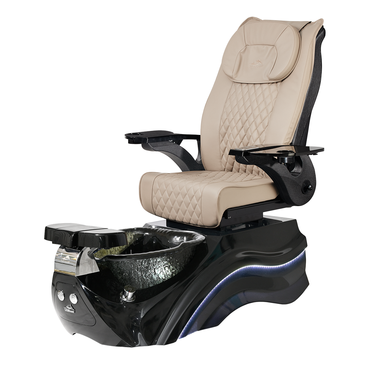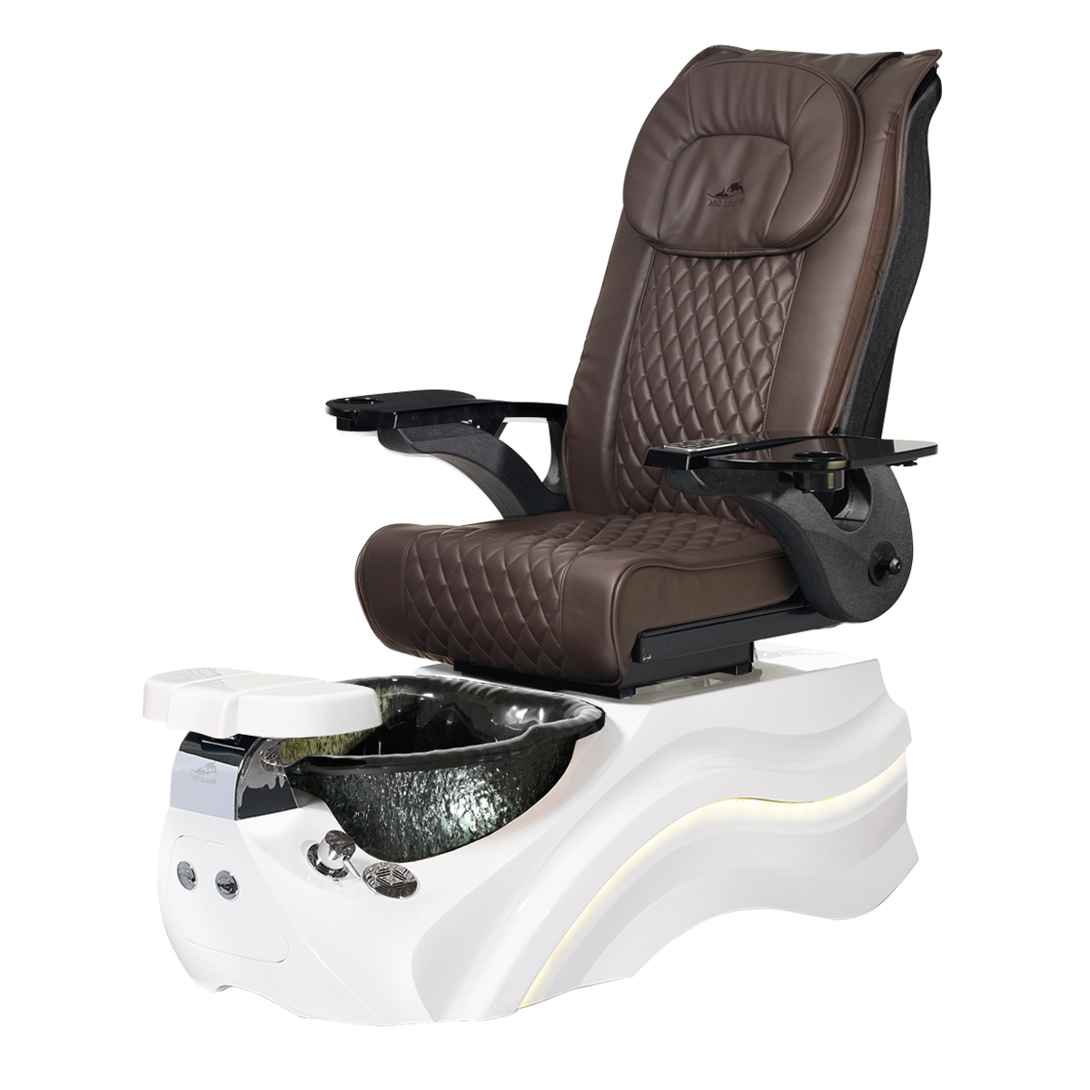 The Pleroma II spa pedicure chair, engineered for transformative pedicure perfection. This pedicure chair is marked by luxury with its glowing LED light accent lighting, stunning diamond quilted PU leather, and accompanied by the strength of it’s durable and thermal shock resistant “stone style” glass basin. A poignant touch to any modern nail salon.