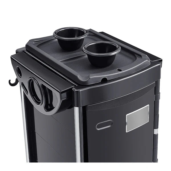 Boost your productivity with the Eskarne Salon Coloring Cart. This easy-to-use, multi-purpose trolley is crafted for stylists and technicians who need efficient access to their tools on the move. Combining sleek aesthetics with smart utility, this affordable salon trolley features a compact design for easy maneuverability and ample storage, making it the perfect addition to any modern beauty salon.