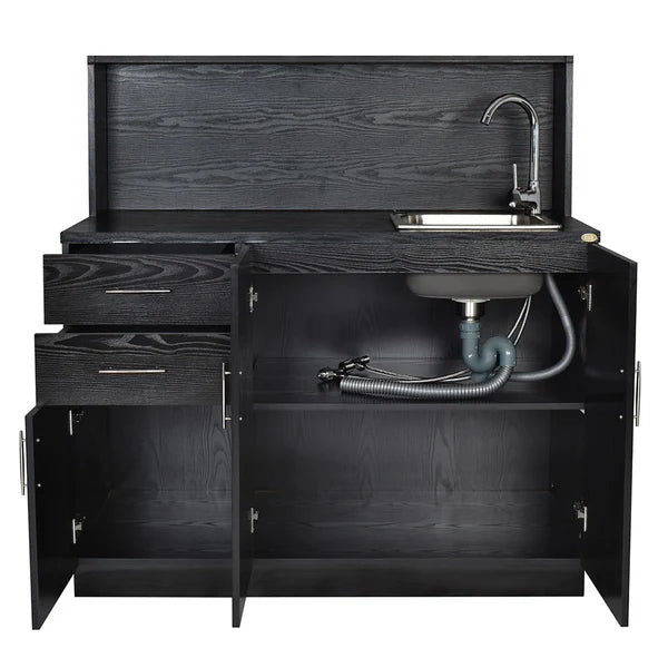 The DIR Maple Salon Color Bar combines modern design with professional functionality. This premium workstation features a built-in stainless steel sink and a modular, ergonomic design with adjustable shelving for efficient mixing and organization. Its durable, splash-resistant surface is easy to clean, ensuring a tidy and professional environment. With the Maple Color Bar, you get a stylish and practical solution for all your hair color needs, designed for lasting performance.